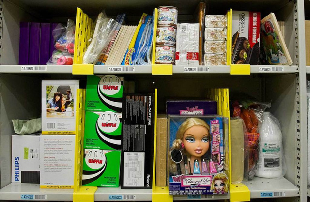 Trong kho của Amazon, búp bê có thể được xếp cùng ngăn với tiểu thuyết, máy sấy xếp cùng khăn mặt... mọi thứ được xếp một cách ngẫu nhiên nhất có thể.