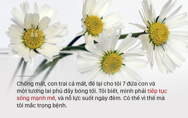 Dù sốc thế nào, bà vẫn muốn đối mặt. Sau khi gặp bác sĩ và nhập viện tư vấn, bà quyết định trải qua một cuộc đại phẫu, cắt bỏ một phần lá phổi đã hỏng, để khối u không lan rộng, cắt bỏ thêm 2 chiếc xương sườn. Qua bao đau đớn, bà không khóc mà nhớ lời bác sĩ dặn: Nếu chịu khó luyện tập và chăm sóc, bà có thể sống thêm 3-5 năm nữa.
