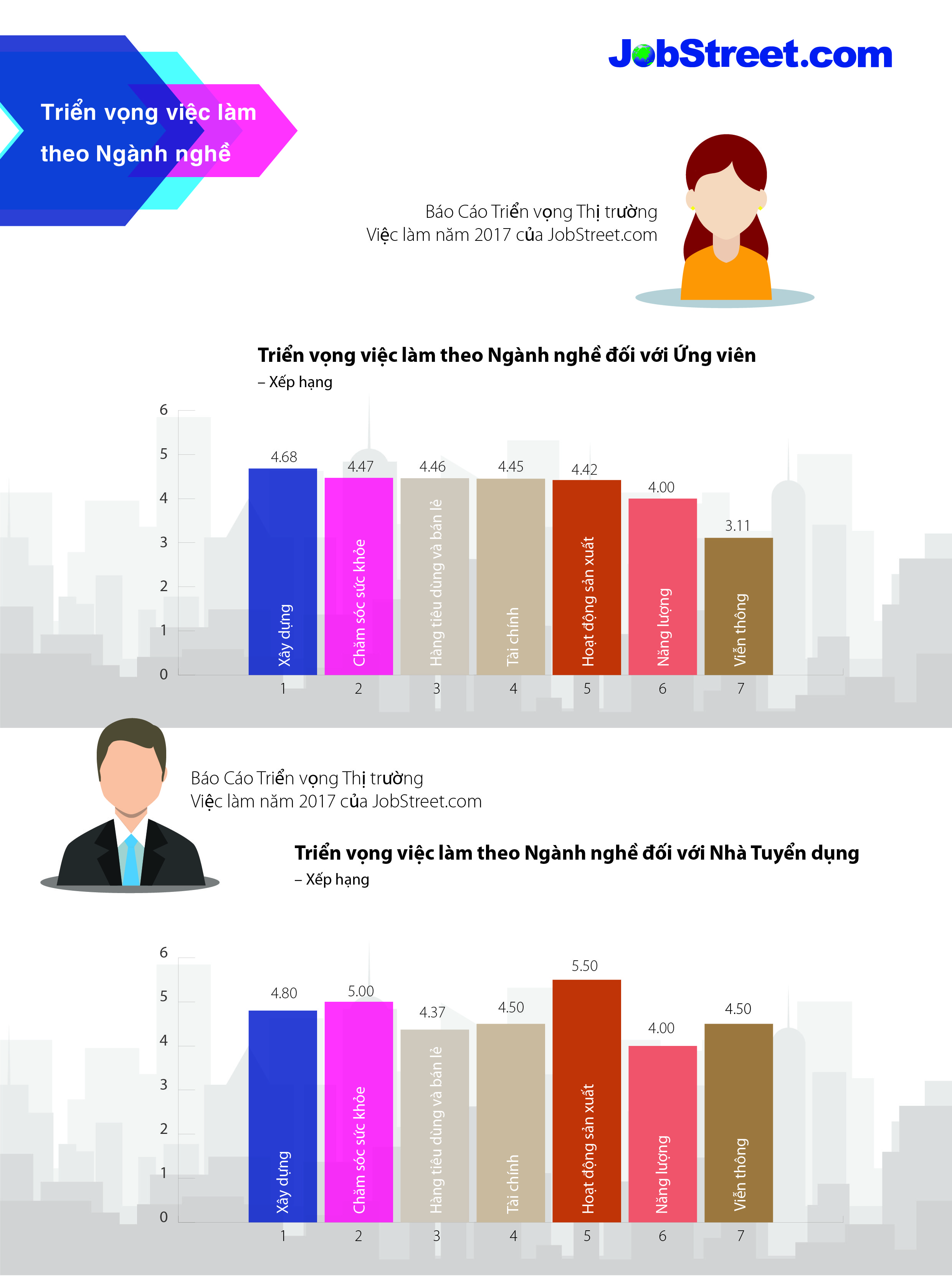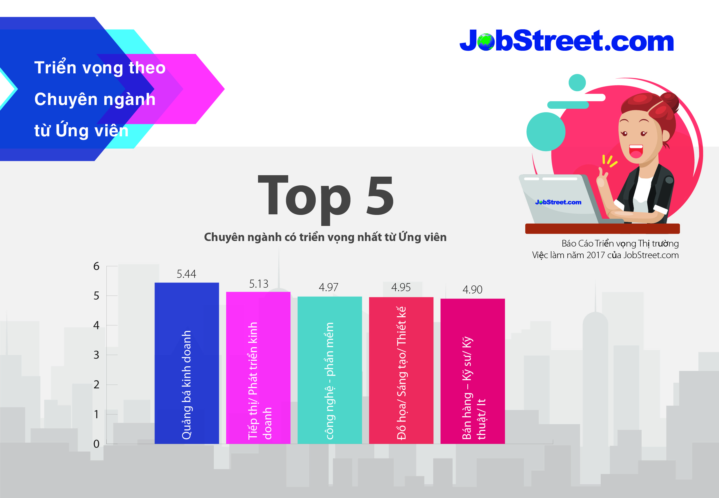 Từ khảo sát 8.105 nhân viên và 2.964 nhà tuyển dụng từ nhiều ngành nghề khác nhau tại 6 nước: Singapore, Malaysia, Indonesia, Thái Lan, Philippines và Việt Nam, báo cáo Triển vọng thị trường việc làm năm 2017 của JobStreet.com đã chỉ ra xu hướng các ngành nghề hấp dẫn nhất trên thị trường.
