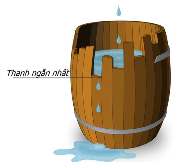 5. Định luật thùng gỗ: Thùng có thể đựng bao nhiêu nước là quyết định ở tấm gỗ ngắn nhất