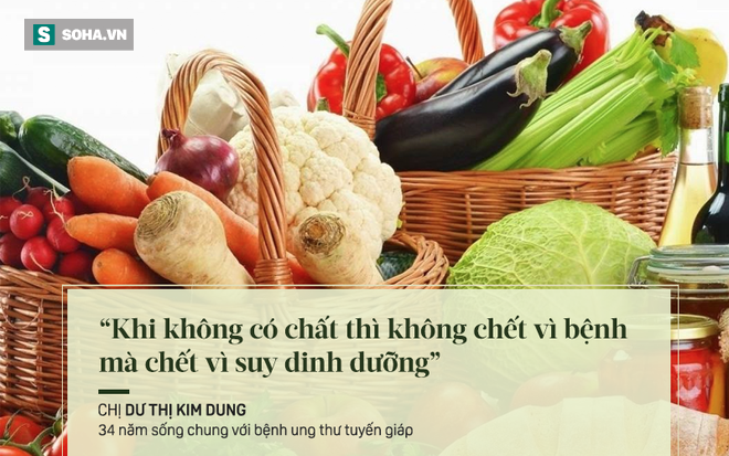 Kết quả giải phẫu bệnh lý chị bị ung thư tuyến giáp đã di căn 1/2 hạch. Chị được chuyển xuống khoa y học hạt nhân điều trị i ốt 131. Chị Dung kể lần đầu ăn kiêng rất vất vả bởi vì chị lại bị liệt dây thanh quản, ăn kiêng không it ốt khiến chị khó thở hơn.
