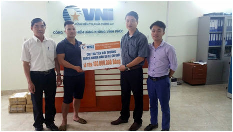 Tin từ Tổng CTCP Bảo hiểm Hàng Không (VNI) cho biết, Công ty Bảo hiểm Hàng không Vĩnh Phúc vừa trao số tiền bồi thường 100 triệu đồng cho chủ xe ô tô BKS 38N-4498 trong vụ tai nạn giao thông xảy ra địa phận thôn Việt An, xã Tân Tiến, huyện Chương Mỹ, Hà Nội.