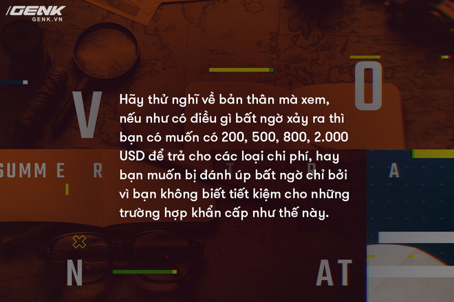 Hãy thử nghĩ về bản thân mà xem, nếu như có điều gì bất ngờ xảy ra thì bạn có muốn có 200, 500, 800, 2.000 USD để trả cho các loại chi phí, hay bạn muốn bị đánh úp bất ngờ chỉ bởi vì bạn không biết tiết kiệm cho những trường hợp khẩn cấp như thế này? Bản thân tôi cũng đã gặp phải tình huống bất ngờ khẩn cấp như vậy; Tôi làm việc ở một công ty trong khoảng nửa năm, và mọi thứ diễn ra rất bình thường, cho đến khi công ty bất ngờ phải đóng cửa và sa thải toàn bộ nhân viên. Tôi đã không thể ngờ được rằng chuyện này sẽ xảy ra, nhưng bởi vì tôi đã tiết kiệm được một khoản tiền trước đó để chuẩn bị cho tình huống bất ngờ này, tôi đã có đủ tiền để có thể sống tốt trước khi tìm được một công việc mới. Điều tương tự cũng sẽ xảy đến với bạn, câu hỏi chỉ là bao giờ và liệu bạn đã chuẩn bị tài chính kỹ càng hay chưa mà thôi.