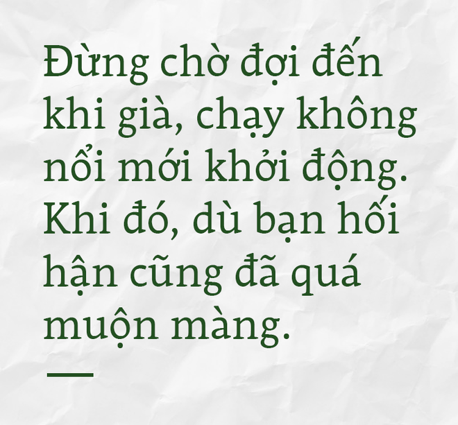 Đừng chờ đợi đến khi già, chạy không nổi mới khởi động. Khi đó, dù bạn hối hận cũng đã quá muộn màng.