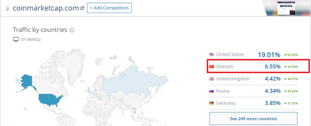 Coinmarketcap : Việt Nam đứng nhì thế giới (sau Mỹ, trên Anh, Nga, Đức)