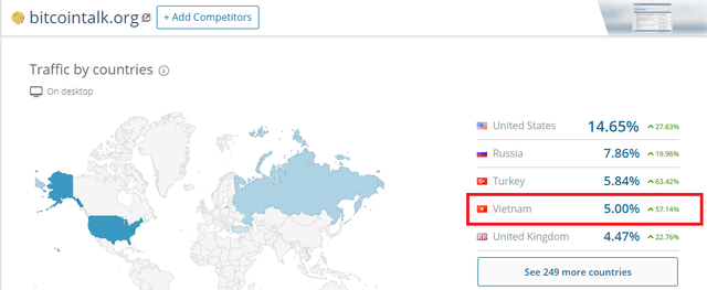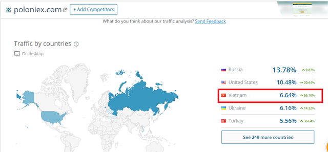 Đó là chuyện quá khứ, còn chuyện bây giờ là đây. Tôi dò xem thử lượng truy cập từ Việt Nam vào các trang hàng đầu mà anh em Crypto Trader toàn cầu hay dùng như CoinMarketCap, Bitcointalk hay trang web của các sàn giao dịch crypto như Coinbase, Bittrex, Bitfinex, Poloniex, Wex (**) thấy thứ hạng của lượng truy cập từ Việt Nam như sau: