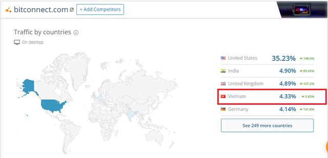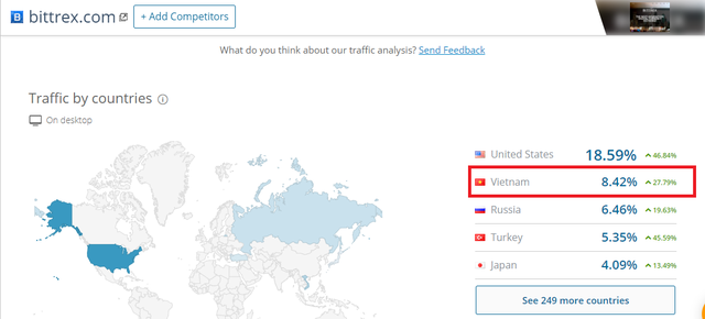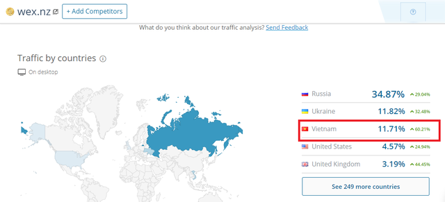 Cách đây một thời gian, khi sàn BTC-e sập (*), có một bài viết đưa ra bằng chứng cho thấy hậu quả có thể rất khủng khiếp của việc sập sàn BTC-e đến giới tiền ảo Việt Nam. Bài viết đó có thống kê truy cập từ Việt Nam vào BTC-e và cho thấy Việt Nam đứng nhì thế giới trong lượng truy cập vào BTC-e theo Alexa. Còn theo SimilarWeb thì Việt Nam đứng nhất thế giới.