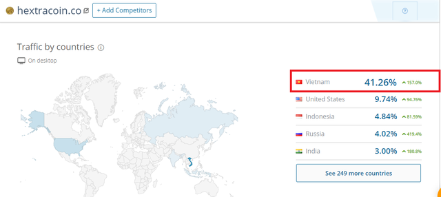 Hextracoin: Việt Nam đứng nhất thế giới, lượng truy cập chiếm 41%, bằng gần 1/2 lượng truy cập toàn thế giới