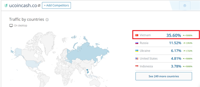 Ucoincash : Việt nam đứng nhất thế giới, lượng truy cập chiếm 35%